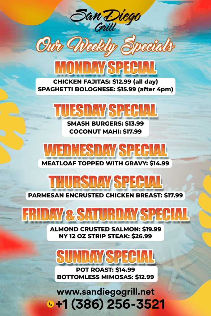 Click to ViewTreat Mom to something special at San Diego Grill this Mother’s Day. Join us for a memorable meal and let her relax while we take care of the rest.